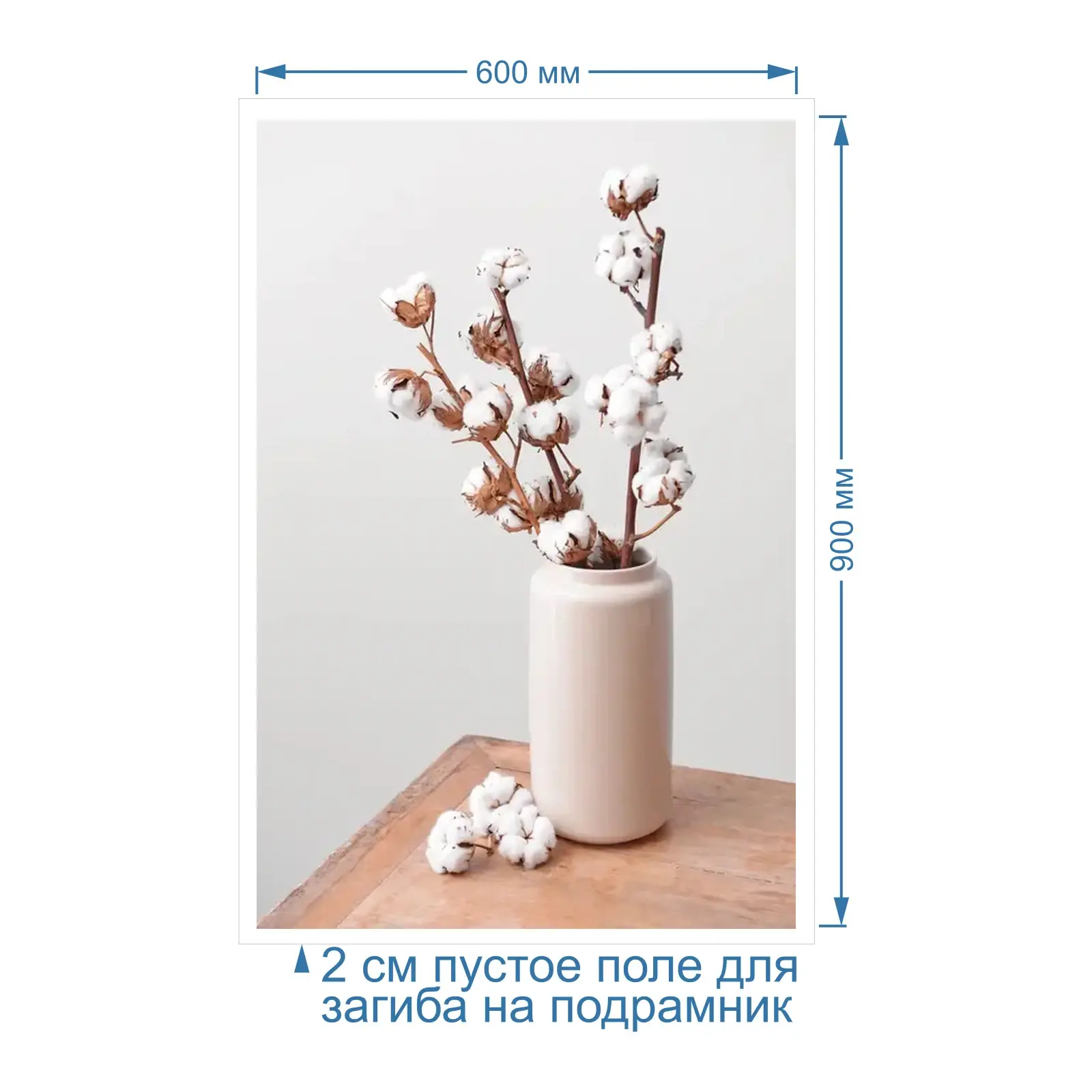 Оживите стены уникальным декором! Плакат Хлопок В Вазе На Столе 60х90 см печатается на трех материалах: