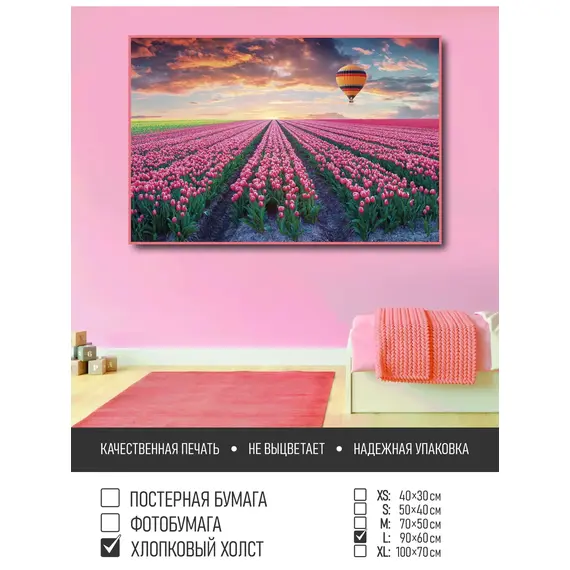 Оживите стены уникальным декором! Плакат Шар Над Полем Лаванды 90х60 см печатается на трех материалах: