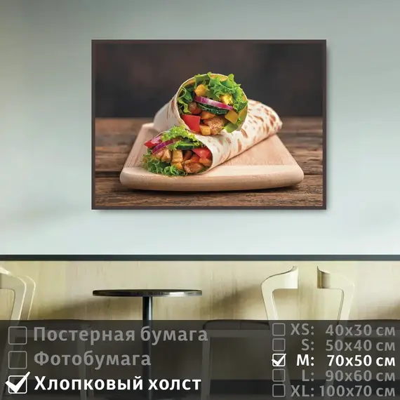 Оживите стены уникальным декором! Плакат Шаурма Для Кафе 70х50 см печатается на трех материалах: