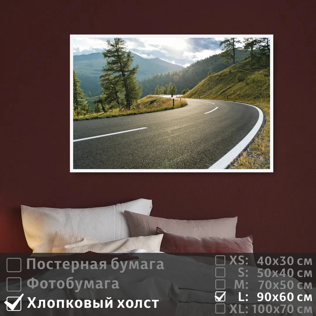 Оживите стены уникальным декором! Плакат Шоссе К Альпийским Горам В Солнечный День 90х60 см печатается на трех материалах: