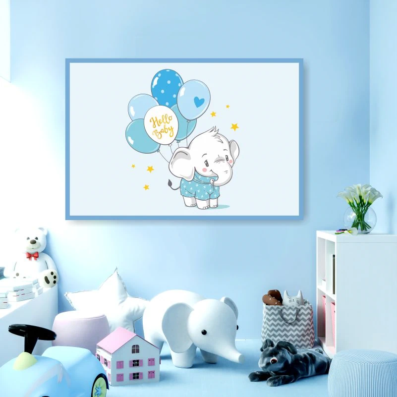 Яркий постер "Слоненок Мальчик С Шариком Привет Малыш Для Детской" для интерьера - создайте уют с помощью искусства!