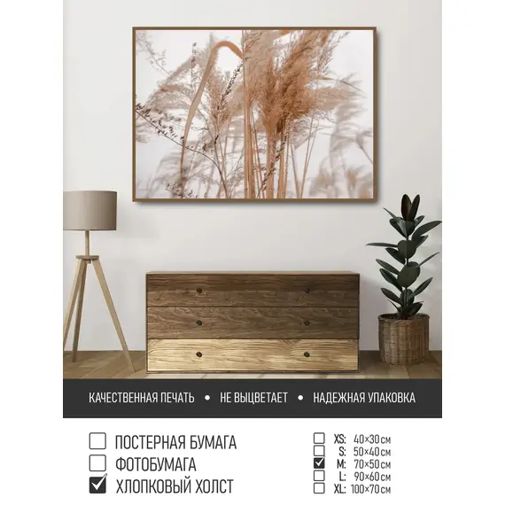 Оживите стены уникальным декором! Плакат Сухая Трава Стиль Бохо 70х50 см печатается на трех материалах: