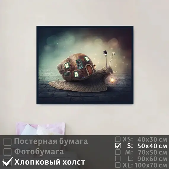 Оживите стены уникальным декором! Плакат Сюрреализм Дом Сказочной Улитки 50х40 см печатается на трех материалах:
