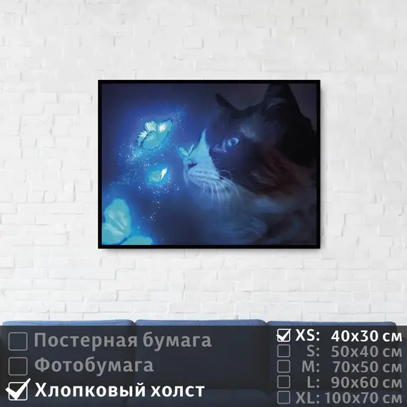 Оживите стены уникальным декором! Плакат Сюрреализм Кошка И Бабочки 40х30 см печатается на трех материалах: