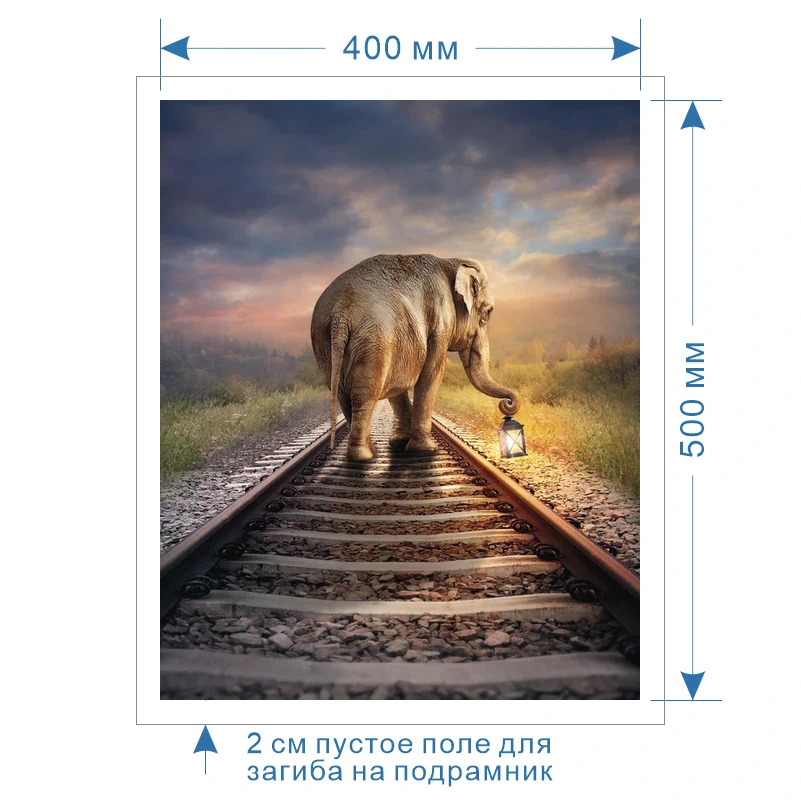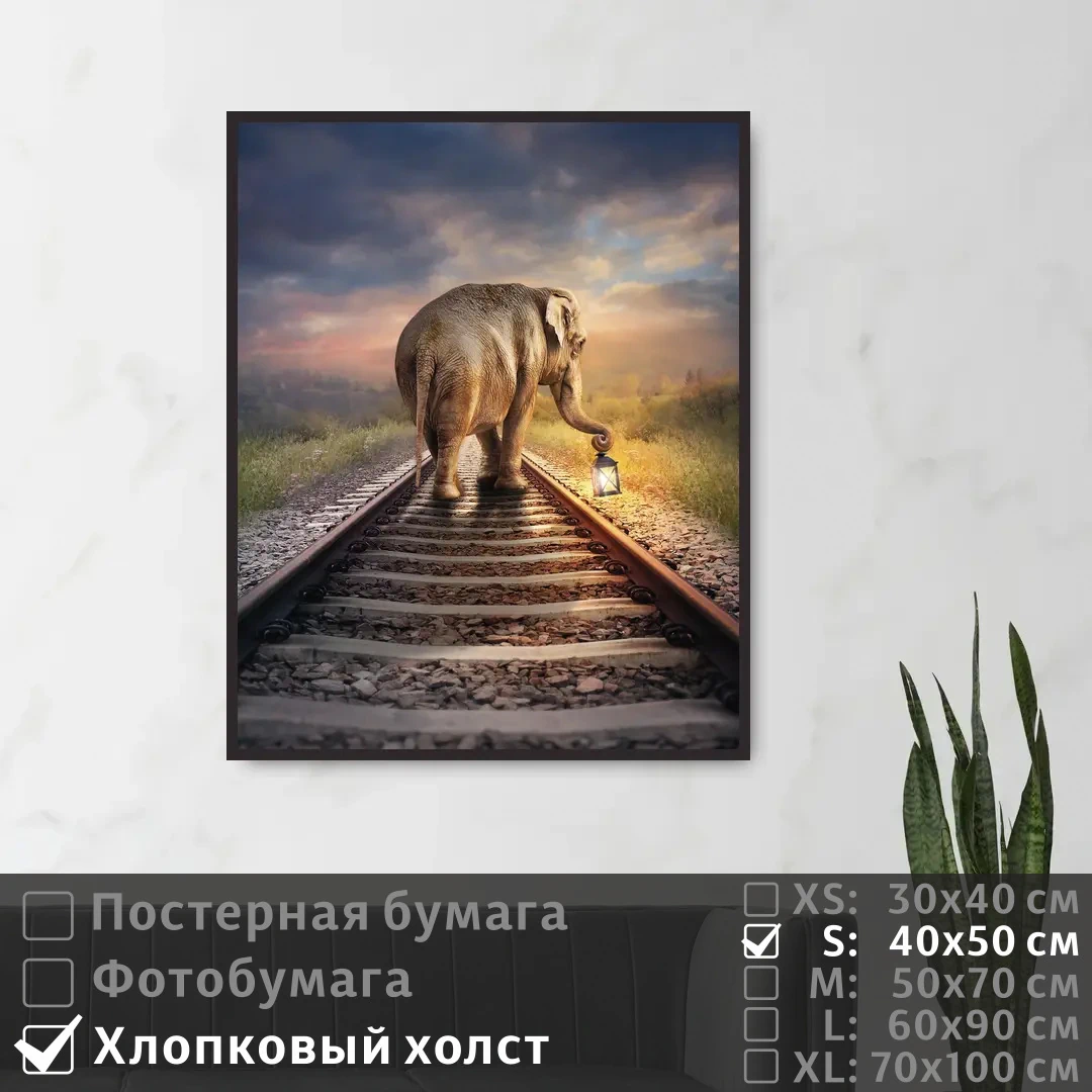 Оживите стены уникальным декором! Плакат Сюрреализм Слон С Фонарем На Железной Дороге 40х50 см печатается на трех материалах:
