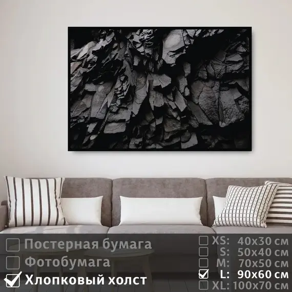 Оживите стены уникальным декором! Плакат Текстура Уголь 90х60 см печатается на трех материалах:
