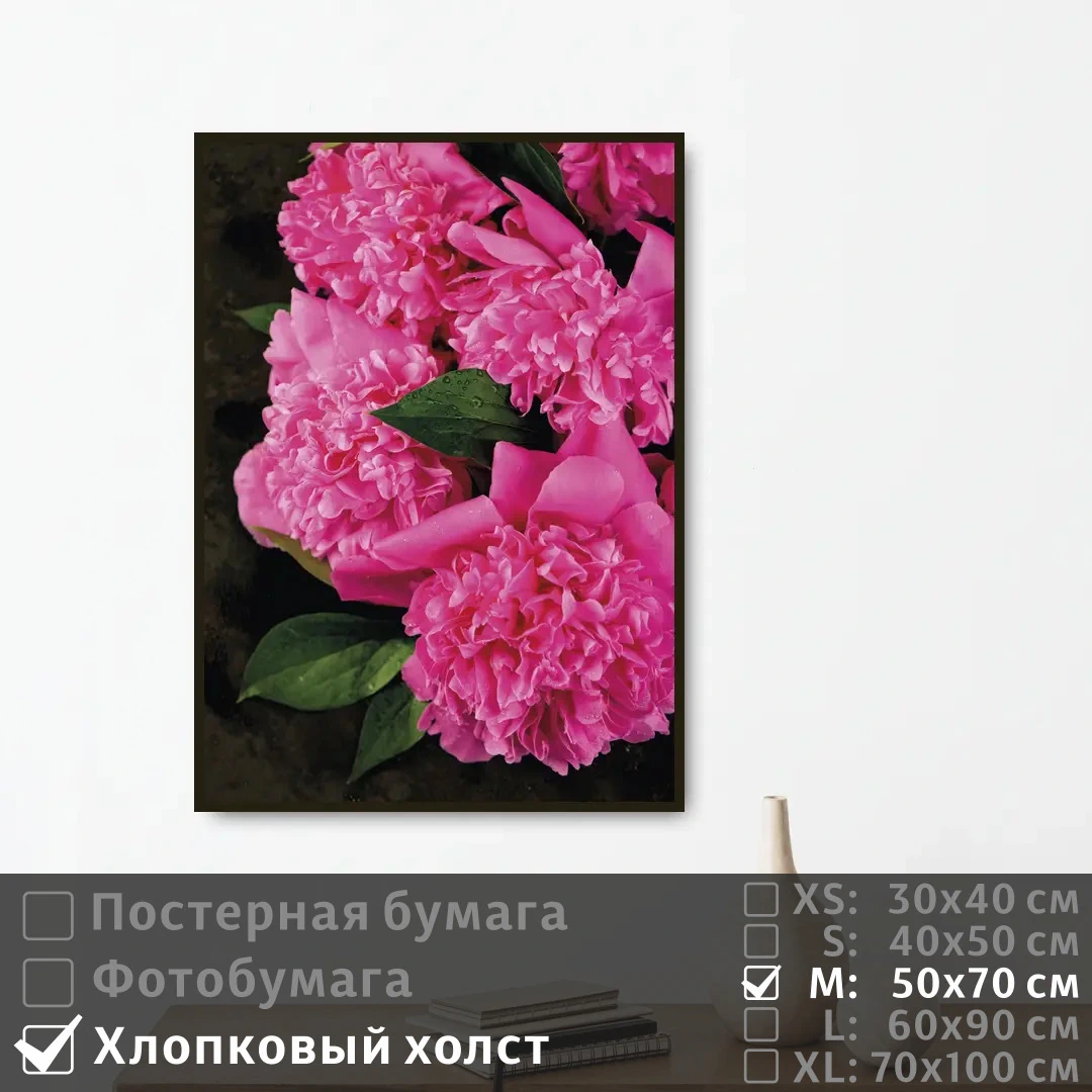 Оживите стены уникальным декором! Плакат Темно Розовые Пионы 50х70 см печатается на трех материалах: