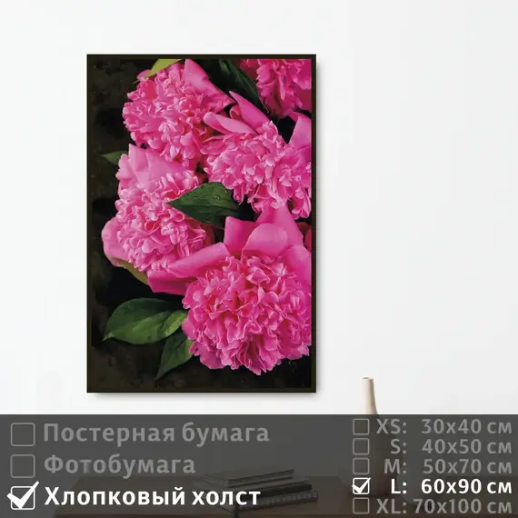 Оживите стены уникальным декором! Плакат Темно Розовые Пионы 60х90 см печатается на трех материалах:
