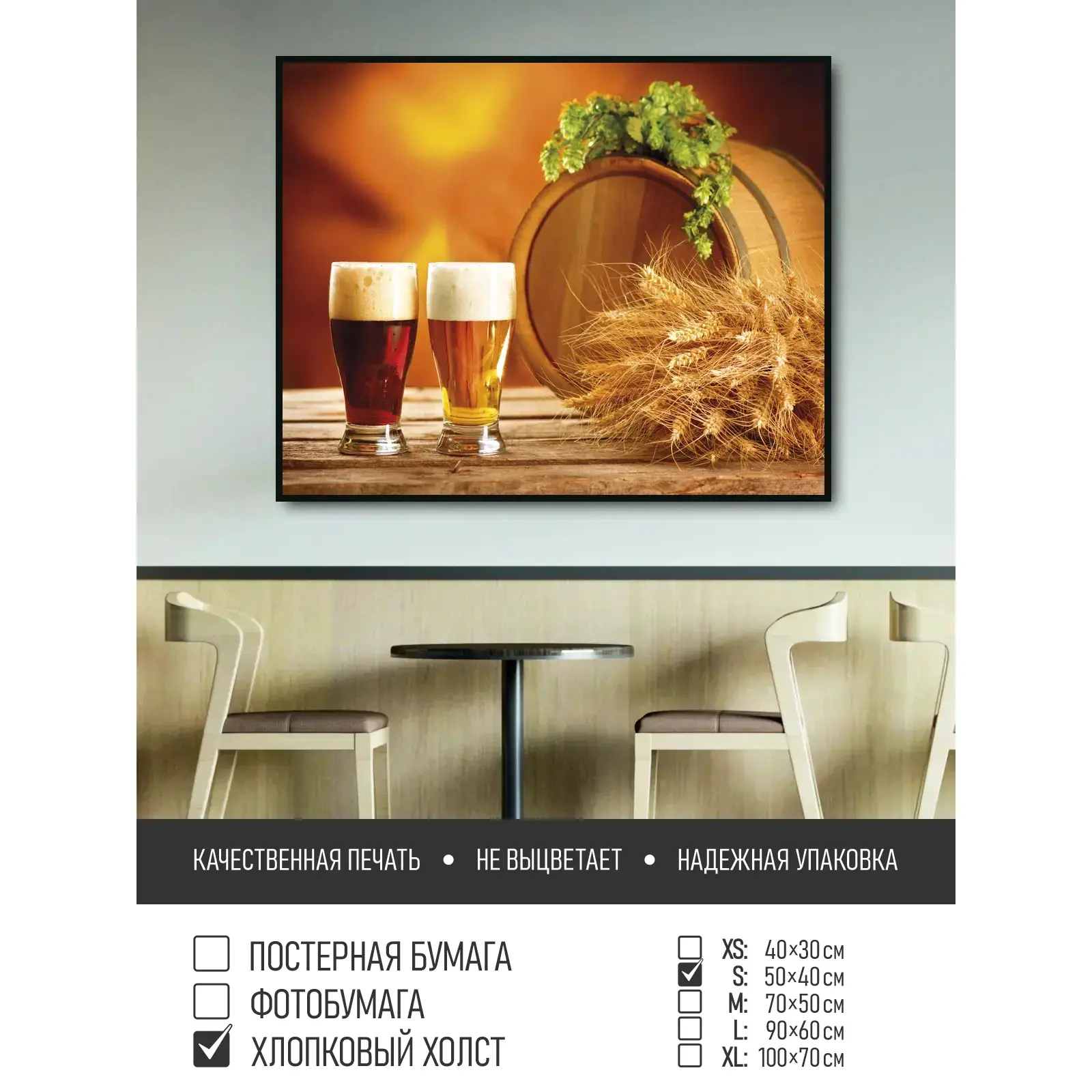 Оживите стены уникальным декором! Плакат Темное И Светлое Пиво 50х40 см печатается на трех материалах: