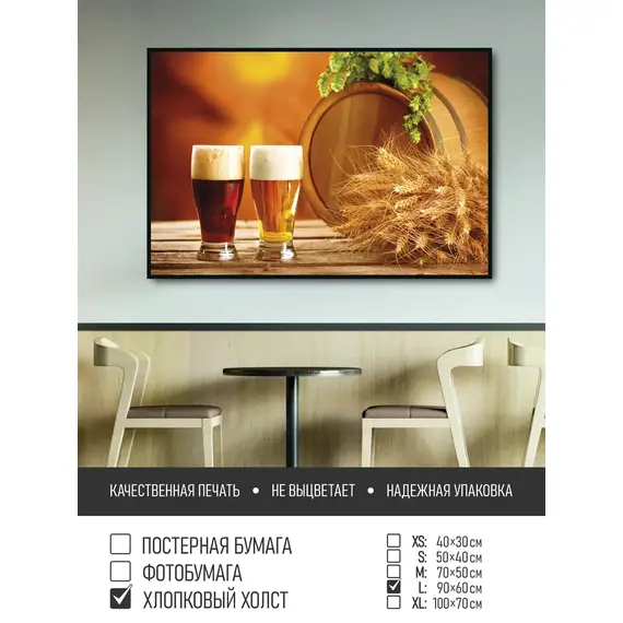 Оживите стены уникальным декором! Плакат Темное И Светлое Пиво 90х60 см печатается на трех материалах:
