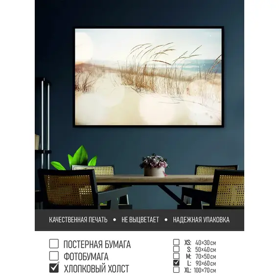 Оживите стены уникальным декором! Плакат Трава На Песке 90х60 см печатается на трех материалах: