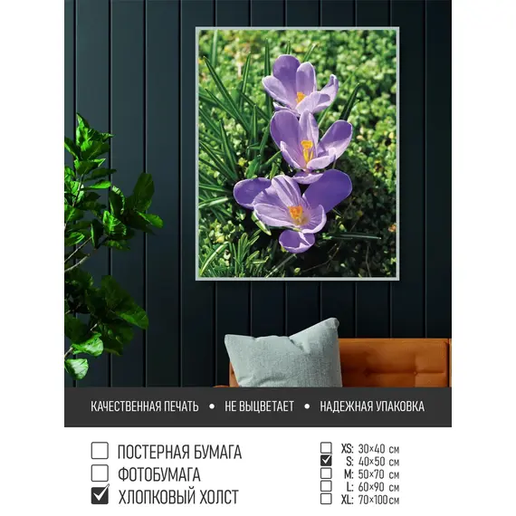 Оживите стены уникальным декором! Плакат Три Цветка Крокуса 40х50 см печатается на трех материалах:
