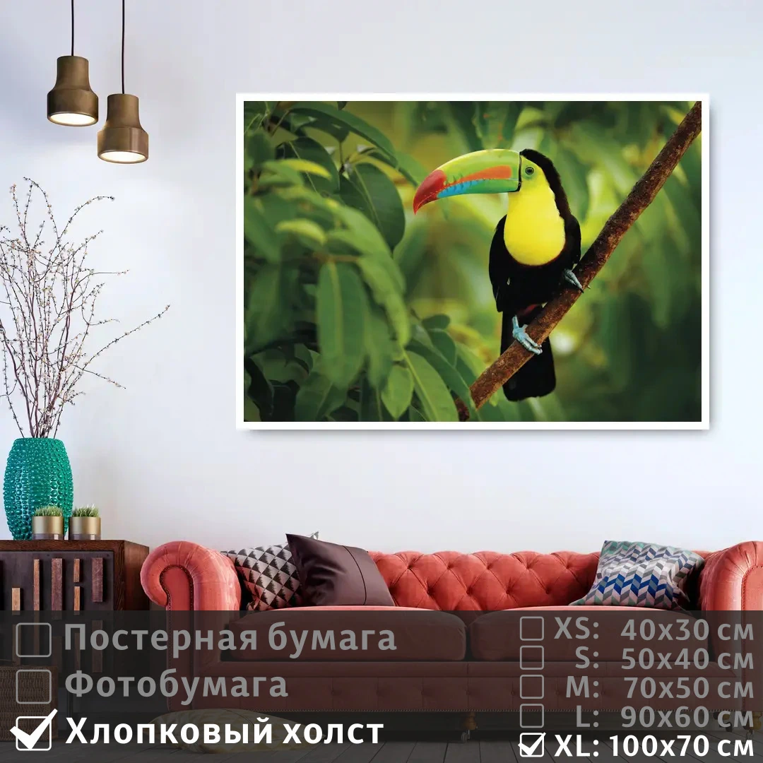 Оживите стены уникальным декором! Плакат Тропическая Птица Тукан Сидит На Ветке 100х70 см печатается на трех материалах: