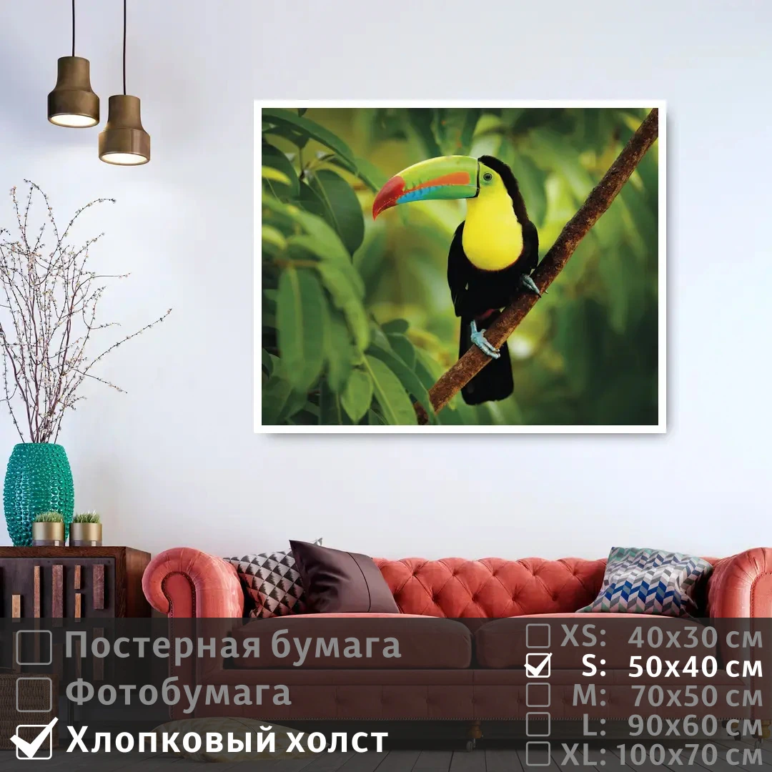 Оживите стены уникальным декором! Плакат Тропическая Птица Тукан Сидит На Ветке 50х40 см печатается на трех материалах: