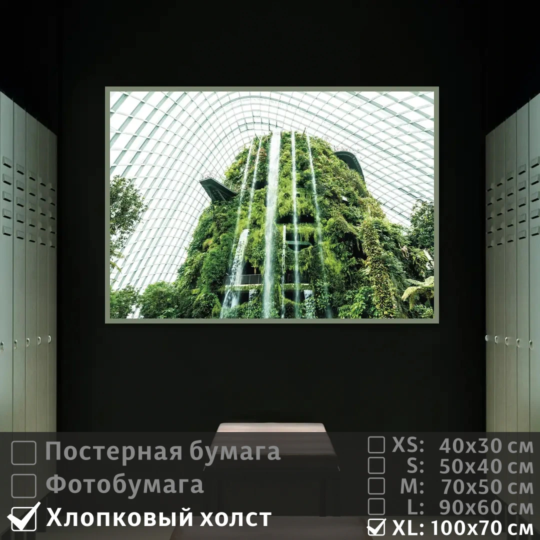Холст на стену "Тропическая Зелень И Водопад В Оранжерее" 100х70 см
