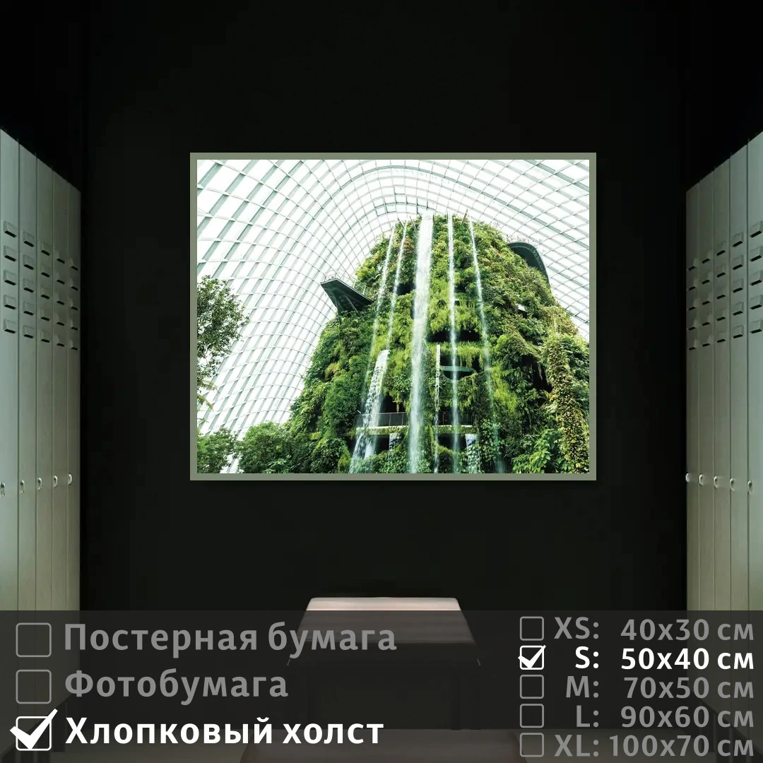 Оживите стены уникальным декором! Плакат Тропическая Зелень И Водопад В Оранжерее 50х40 см печатается на трех материалах: