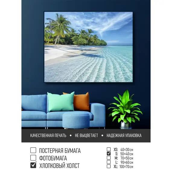 Оживите стены уникальным декором! Плакат Тропический Остров 50х40 см печатается на трех материалах: