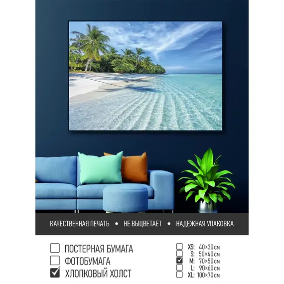 Оживите стены уникальным декором! Плакат Тропический Остров 70х50 см печатается на трех материалах: