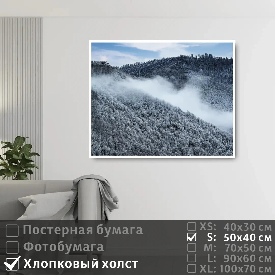 Холст на стену "Туман На Зимней Горной Вершине" 50х40 см