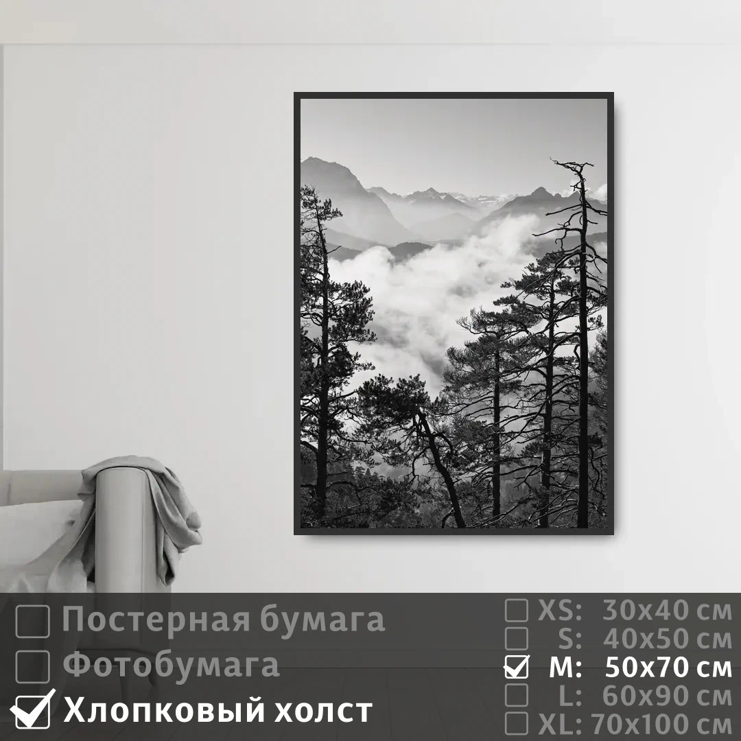 Оживите стены уникальным декором! Плакат Туман В Лесу Черно Белое Фото 50х70 см печатается на трех материалах: