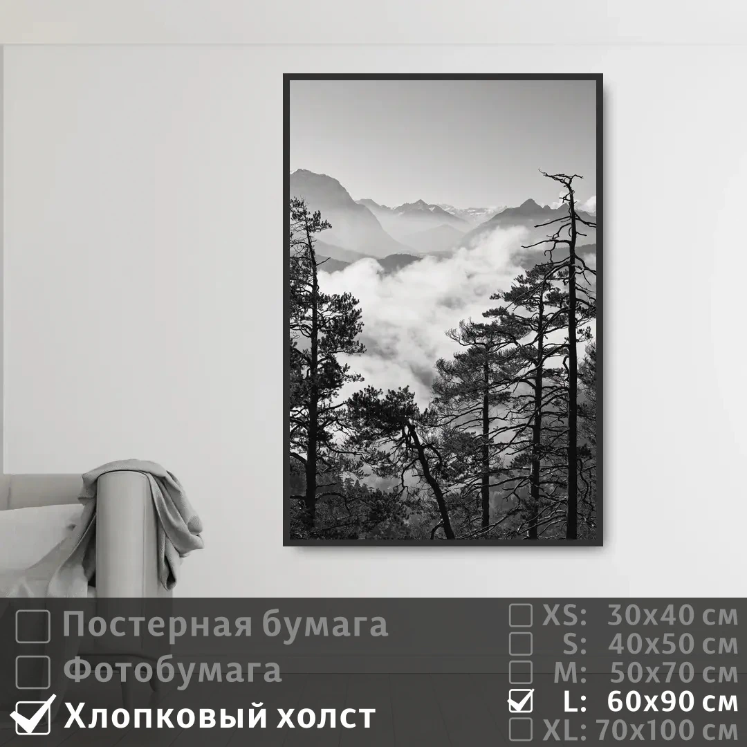 Холст на стену "Туман В Лесу Черно Белое Фото" 60х90 см