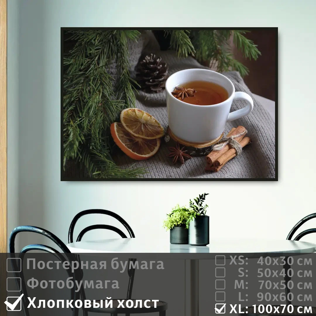 Оживите стены уникальным декором! Плакат Уютный Чай У Еловых Веток 100х70 см печатается на трех материалах: