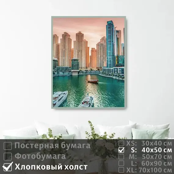 Оживите стены уникальным декором! Плакат Яхты И Небоскребы В Дубай Марине 40х50 см печатается на трех материалах: