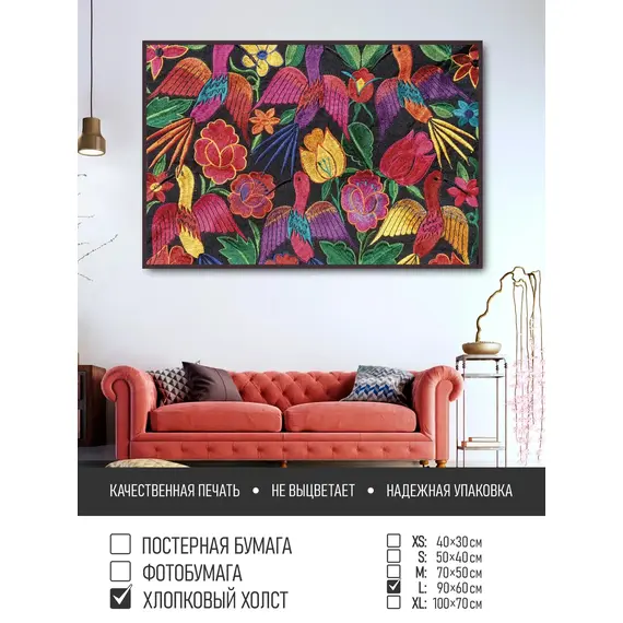 Оживите стены уникальным декором! Плакат Яркая Ткань Ручная Работа 90х60 см печатается на трех материалах: