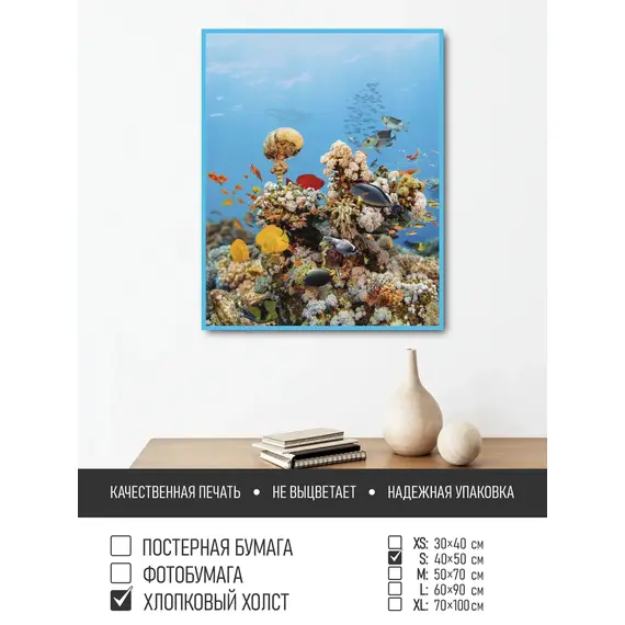 Оживите стены уникальным декором! Плакат Яркие Морские Рыбки 40х50 см печатается на трех материалах: