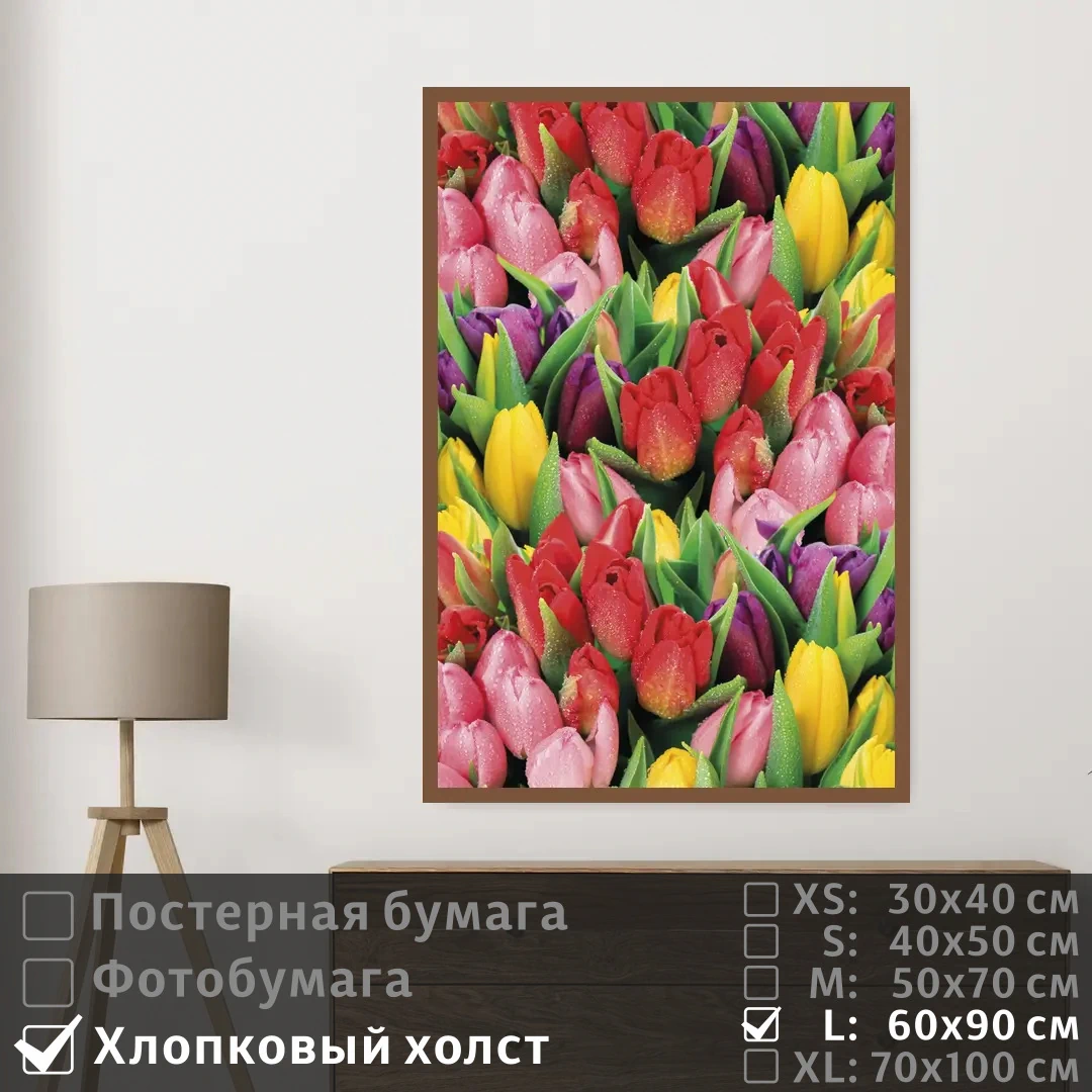 Оживите стены уникальным декором! Плакат Яркие Весенние Тюльпаны 60х90 см печатается на трех материалах: