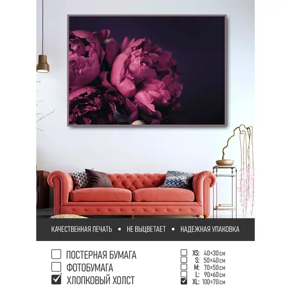 Оживите стены уникальным декором! Плакат Ярко Розовые Пионы 100х70 см печатается на трех материалах: