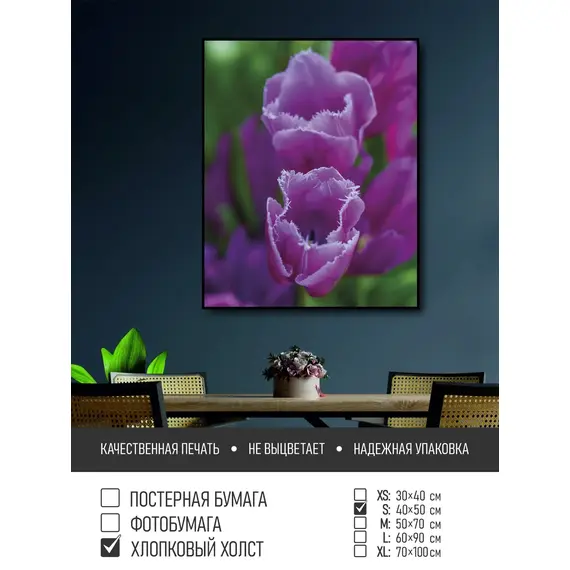 Оживите стены уникальным декором! Плакат Ярко Розовые Тюльпаны 40х50 см печатается на трех материалах: