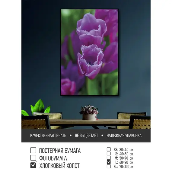 Оживите стены уникальным декором! Плакат Ярко Розовые Тюльпаны 60х90 см печатается на трех материалах: