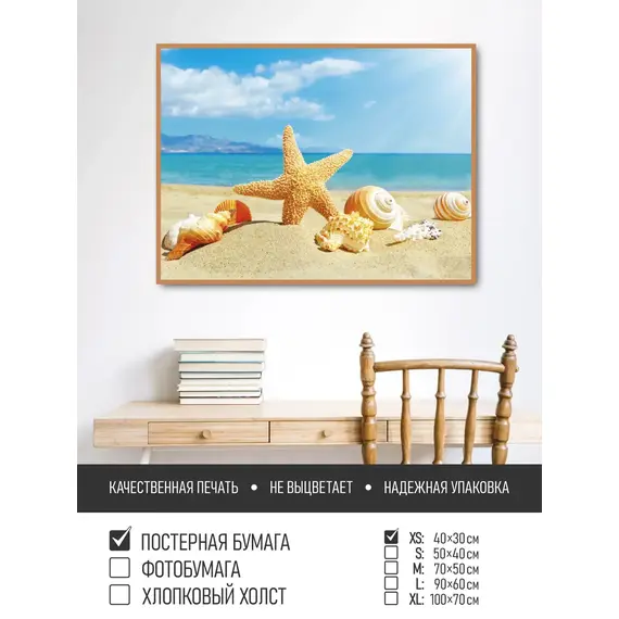 Оживите стены уникальным декором! Плакат Морская Звезда И Ракушки 40х30 см печатается на трех материалах: