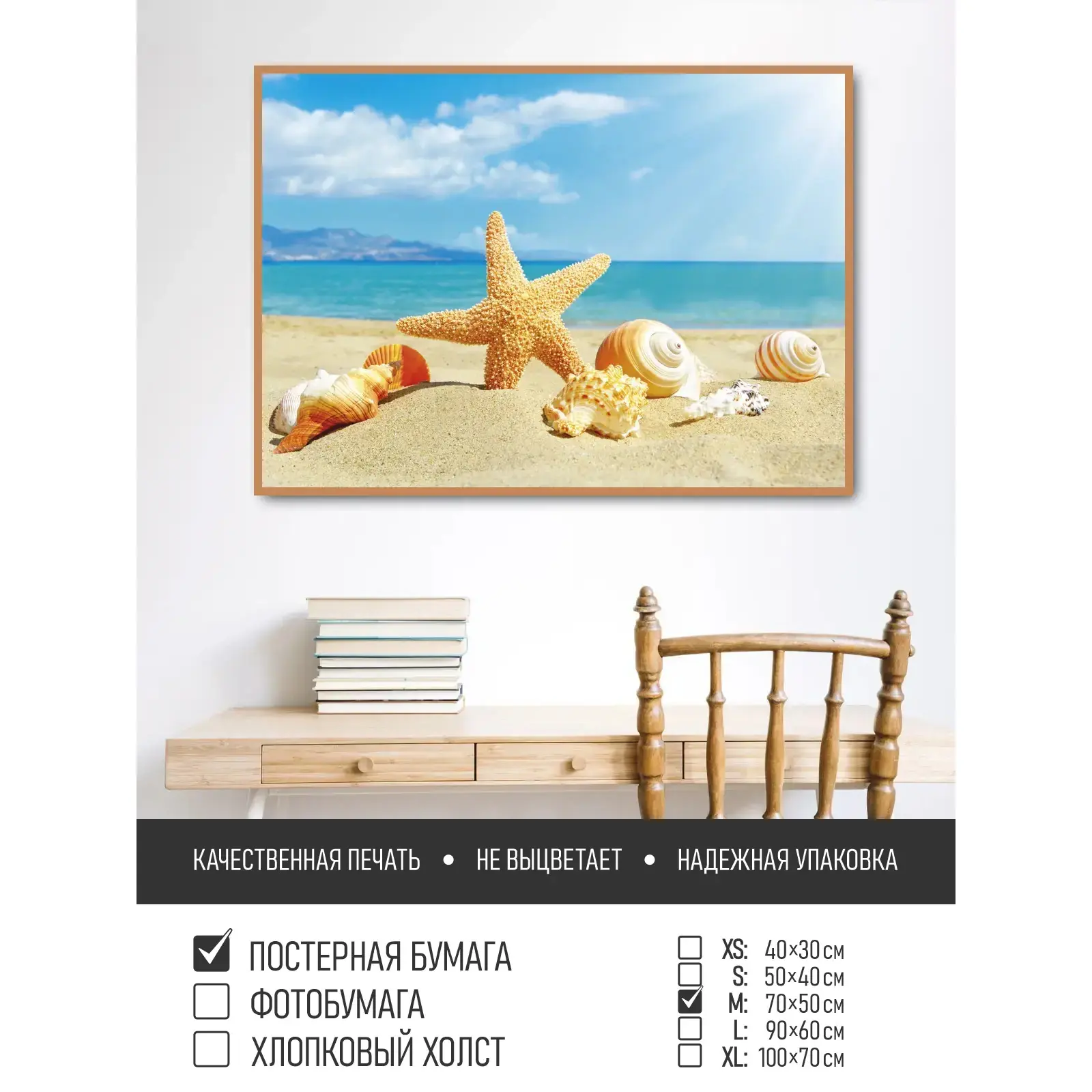 Оживите стены уникальным декором! Плакат Морская Звезда И Ракушки 70х50 см печатается на трех материалах: