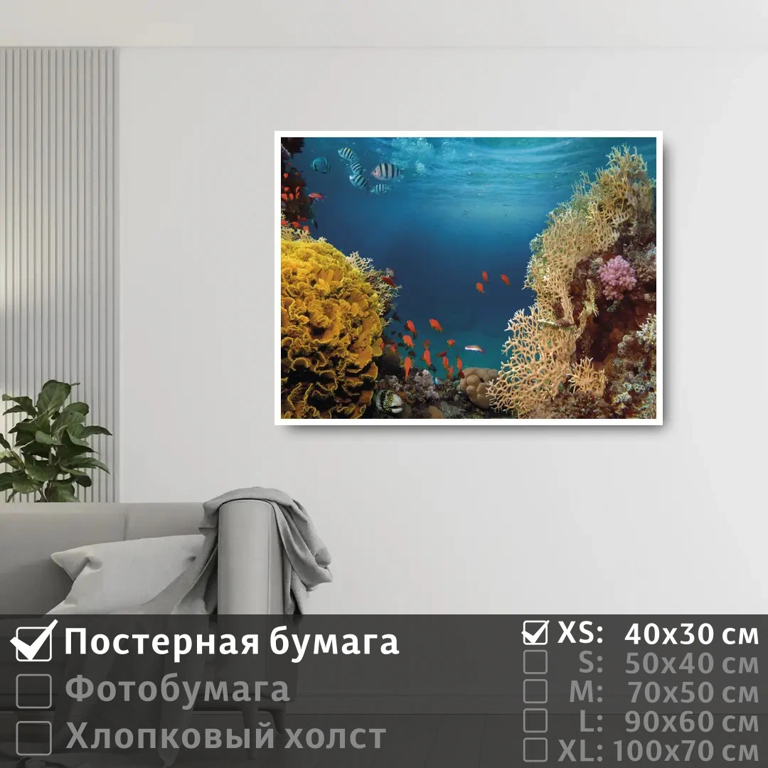 Оживите стены уникальным декором! Плакат Морские Рыбки В Коралловых Рифах 40х30 см печатается на трех материалах: