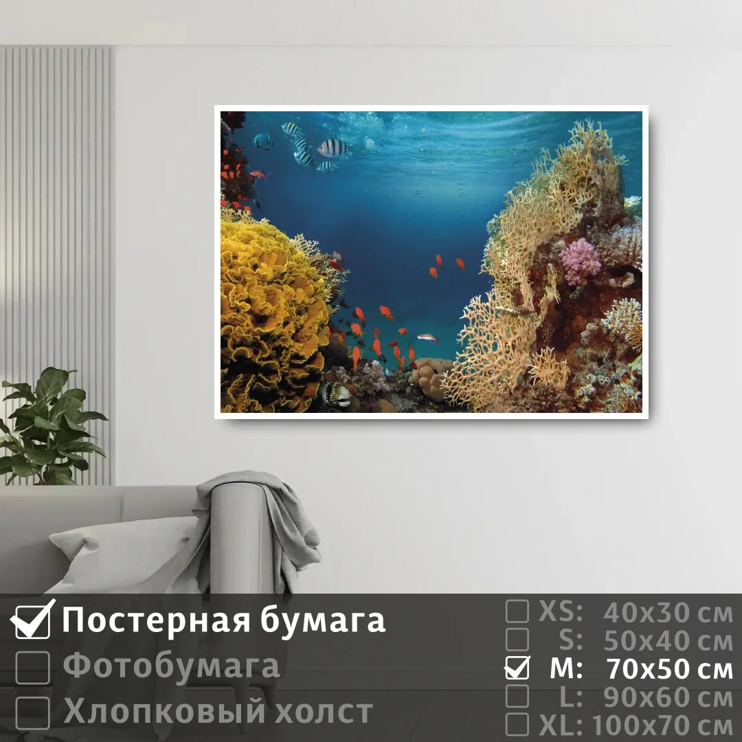 Оживите стены уникальным декором! Плакат Морские Рыбки В Коралловых Рифах 70х50 см печатается на трех материалах: