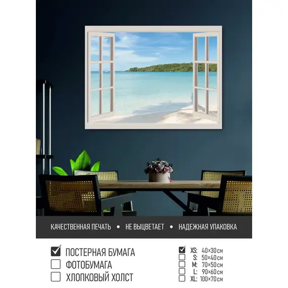 Оживите стены уникальным декором! Плакат Морской Пейзаж Вид Из Окна 40х30 см печатается на трех материалах: