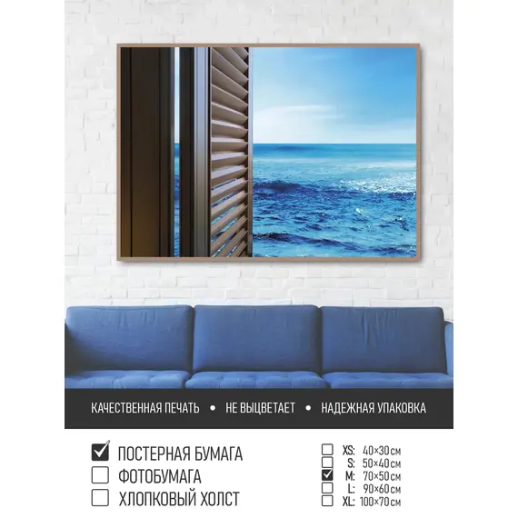 Оживите стены уникальным декором! Плакат Морской Вид Из Окна 70х50 см печатается на трех материалах: