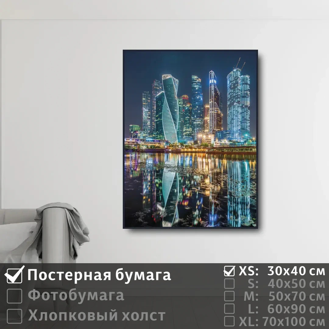 Оживите стены уникальным декором! Плакат Москва Сити Ночью 30х40 см печатается на трех материалах: