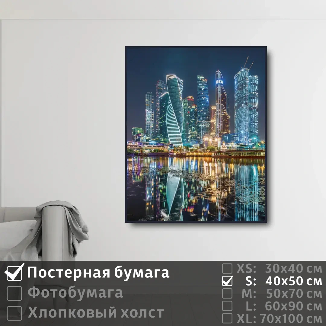 Оживите стены уникальным декором! Плакат Москва Сити Ночью 40х50 см печатается на трех материалах: