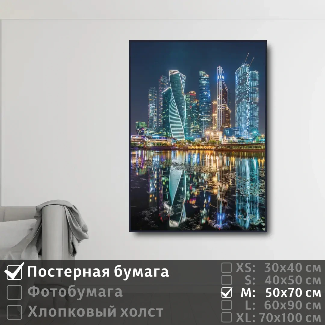 Оживите стены уникальным декором! Плакат Москва Сити Ночью 50х70 см печатается на трех материалах: