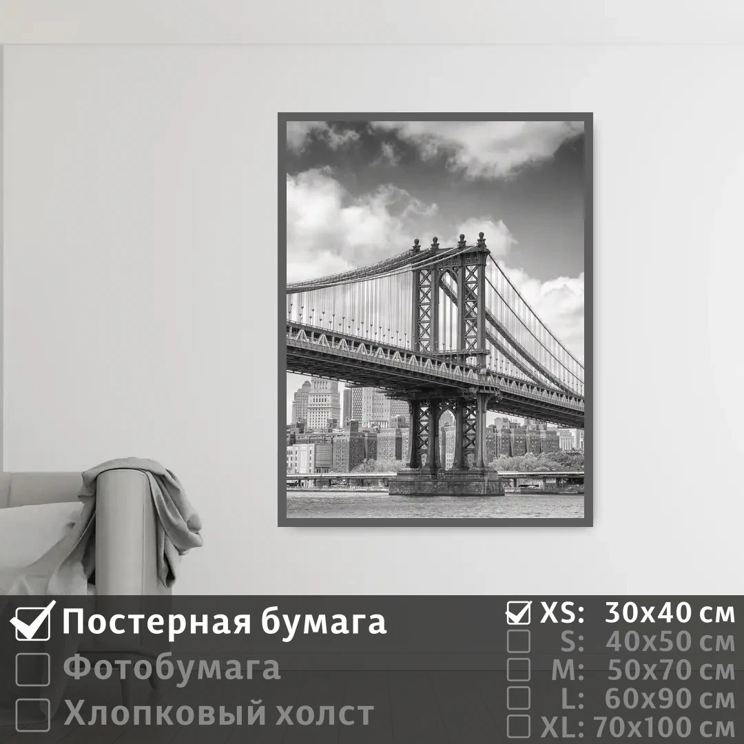 Оживите стены уникальным декором! Плакат Мост Манхэттен Черно Белое Фото 30х40 см печатается на трех материалах: