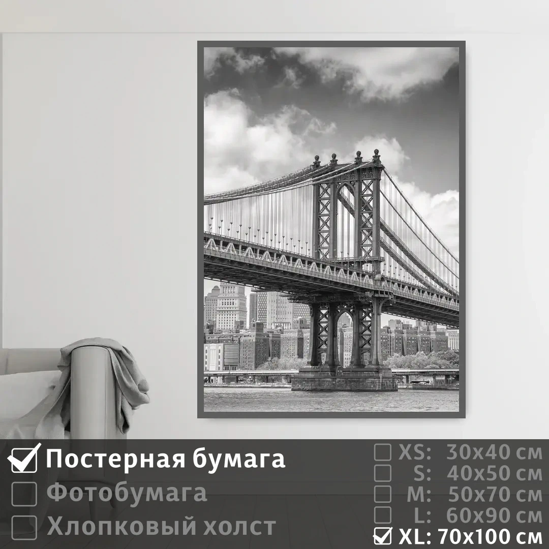 Оживите стены уникальным декором! Плакат Мост Манхэттен Черно Белое Фото 70х100 см печатается на трех материалах: