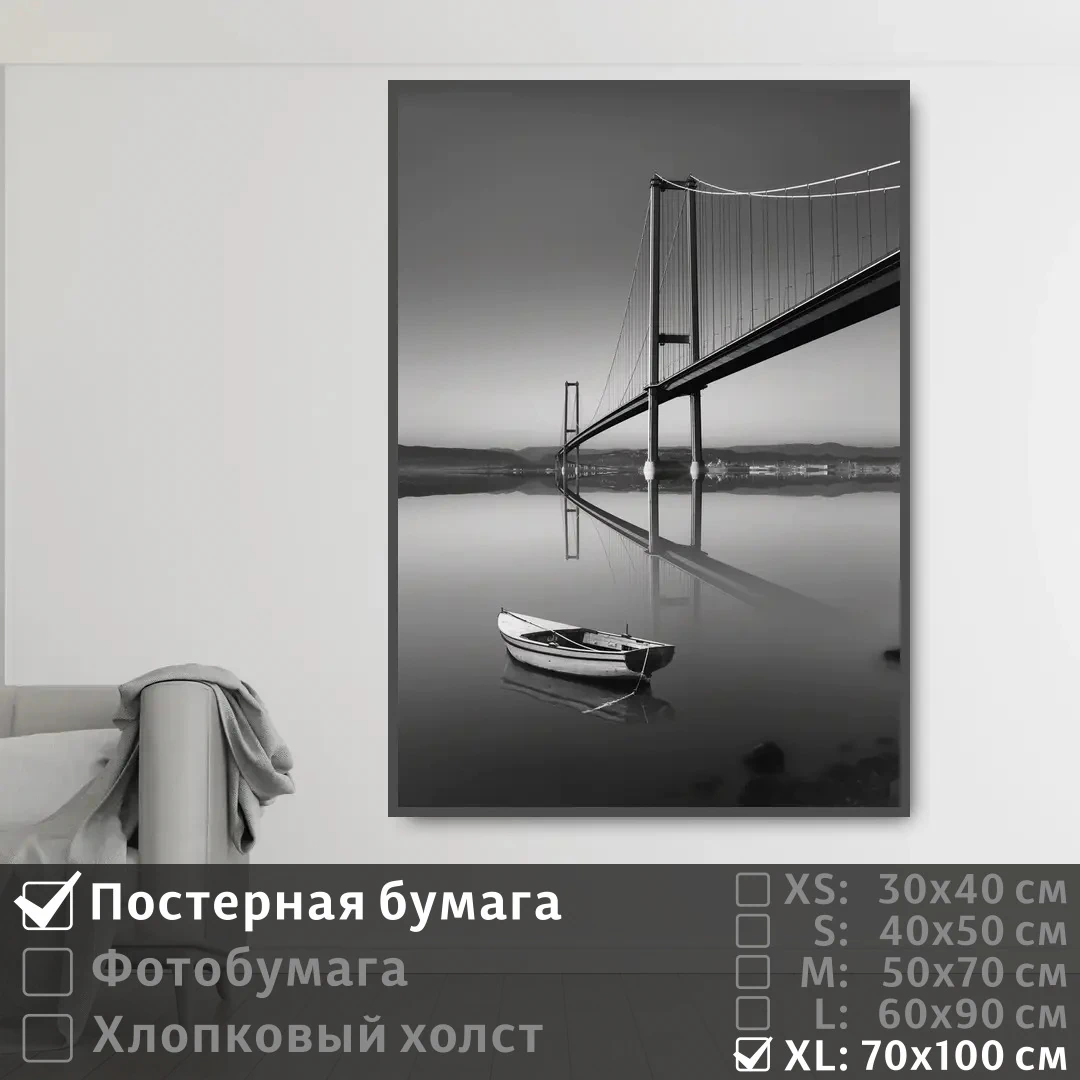 Оживите стены уникальным декором! Плакат Мост В Калифорнии Черно Белое Фото 70х100 см печатается на трех материалах: