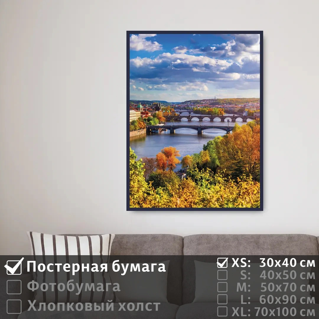 Оживите стены уникальным декором! Плакат Мосты Над Рекой Осенняя Прага 30х40 см печатается на трех материалах: