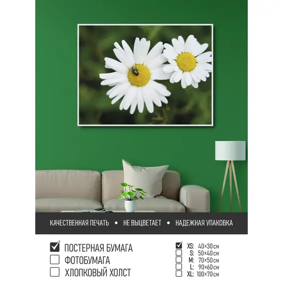 Оживите стены уникальным декором! Плакат Муха На Ромашке 40х30 см печатается на трех материалах: