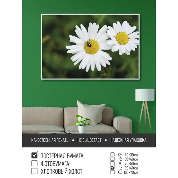 Оживите стены уникальным декором! Плакат Муха На Ромашке 90х60 см печатается на трех материалах: