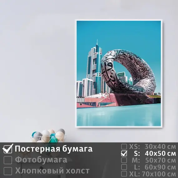 Оживите стены уникальным декором! Плакат Музей Будущего Дубай 40х50 см печатается на трех материалах: