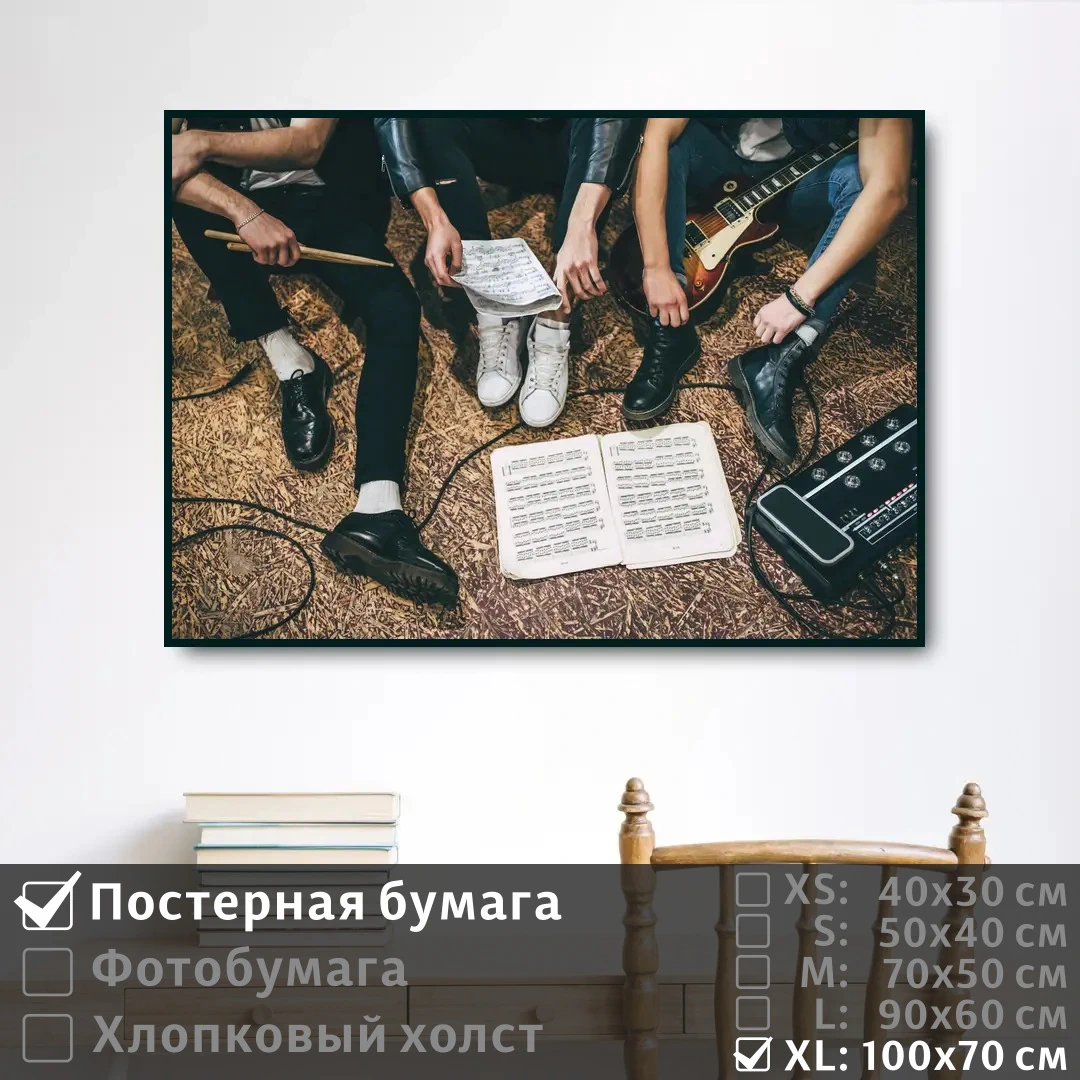 Оживите стены уникальным декором! Плакат Музыкальная Группа В Студии 100х70 см печатается на трех материалах: